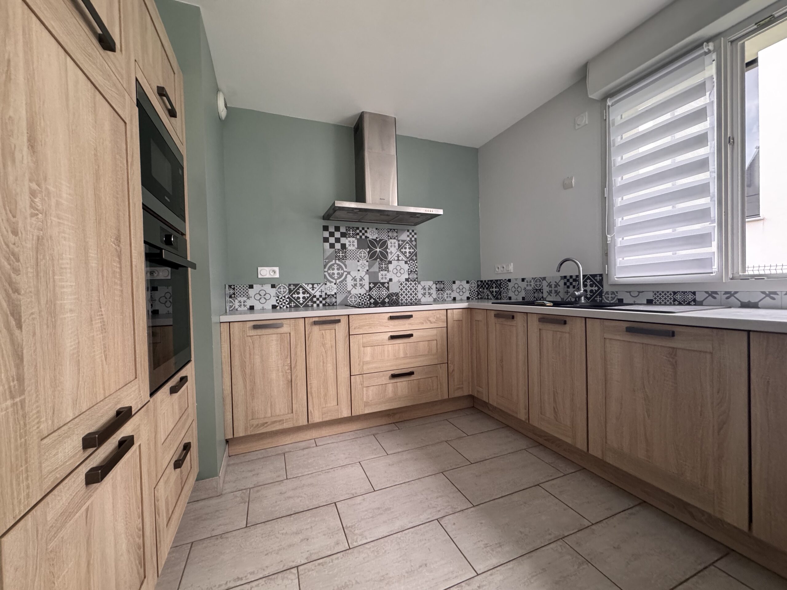 Entrée placard, cuisine équipée ouverte sur le séjour salon 45 m²,