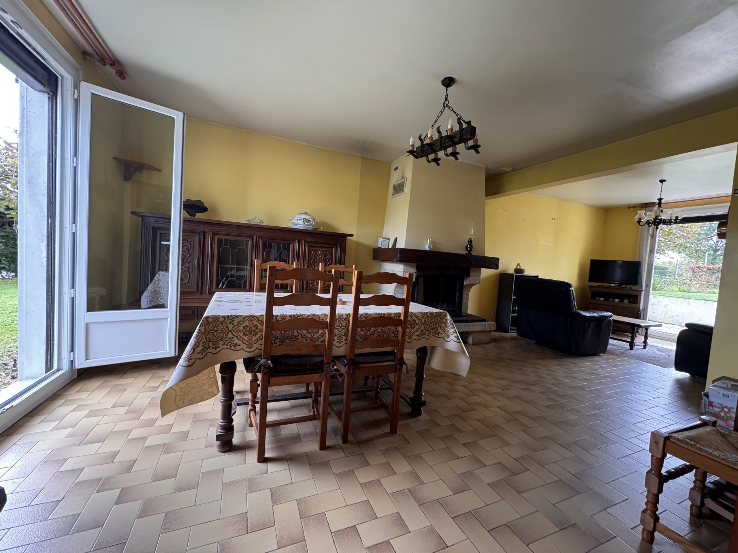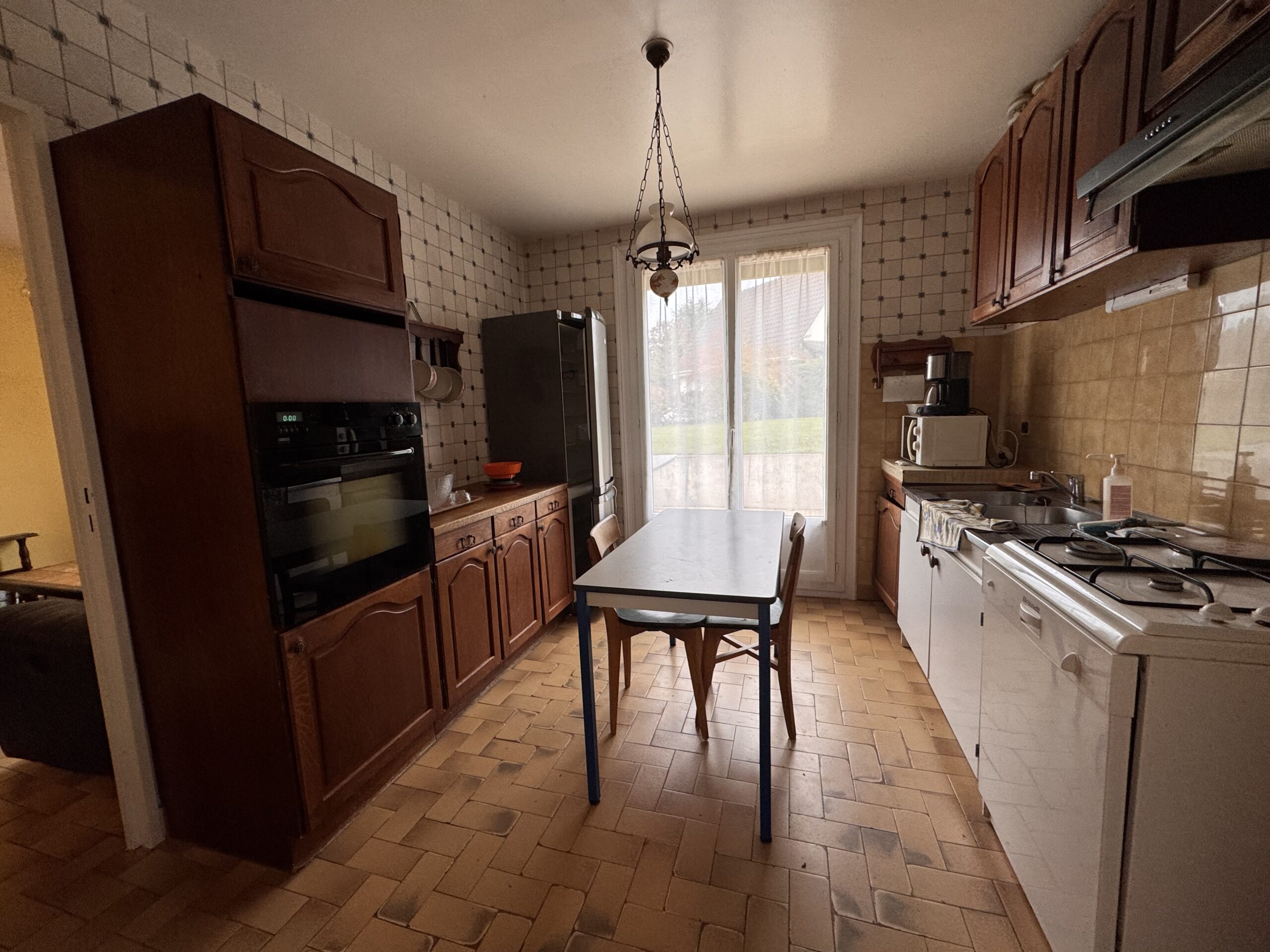 Entrée, cuisine meublée, séjour salon cheminée insert, dégagement wc,